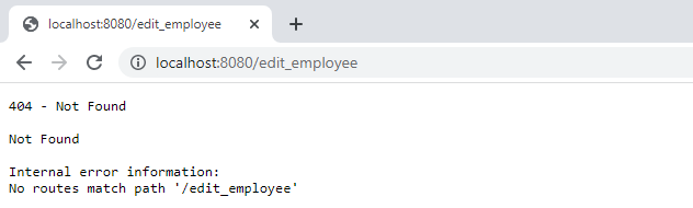We also included a hidden field in the **views\emplistall.dt** file: the **id** field, which has the value of the **id** field in the **employees** table, and which we can use as a key to retrieve the record so we can populate the form with the employee data: